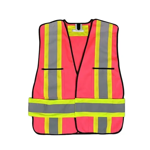 Rompi reflektor merah muda kualitas tinggi langsung dari pabrik stiker ringan rompi keselamatan penutup depan dengan saku logo disesuaikan